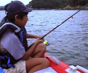 | 先週と同じ出航場所に到着したけど風が出てる・・・5時過ぎの天気予報を見たら曇り☁ ニュースを見ると北陸地方はまたまた大雨が降っている☔ しばらく待機して5時半 心なしか風が和らいできた感じなのでボートの準備をして前回と同じポイントへGO! 波しぶきを浴びて半身ズブ濡れになりながら高島を目指す でも暖かいからそんなに気にならずに到着(*^_^*) ポイントを東側にしたから西風の風裏になるため波は凄く穏やかだよ 早速、アンカーを入れて釣り開始だ 最初に釣れてきたのはフグでその次はフグのダブル^^; エサが無くなるかフグが釣れるかの繰り返してやっと釣れてきたのはギザミ お子にも当たりがあってアイナメが釣れてきた 波に揺られてお疲れ気味だったけど少し釣る気になってきたようだね^^ 底を少しきって待ってると今度はメバル 小さいけど良い引きだった 釣り開始から2時間 エサ取りの猛攻のためエサが無くなりお子の希望の海水浴へ切り替え 約2時間だけの釣りとなりました 砂浜から本日のポイント付近を望む 本日の釣果 キザミ1匹、 アイナメ1匹、 メバル1匹 |